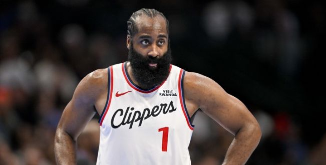 在最近的三场比赛中,哈登场均出战43.2分钟,得到35.3分9篮板8助攻1抢断1.3盖帽,1胜2负。